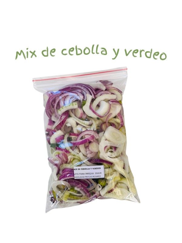 Combinación de cebolla blanca y morada en juliana, y verdeo cortado en rodajas finas. Ideal para salteados, tortillas, guisos, tartas, sopas y más. Producto sin cocción previa.